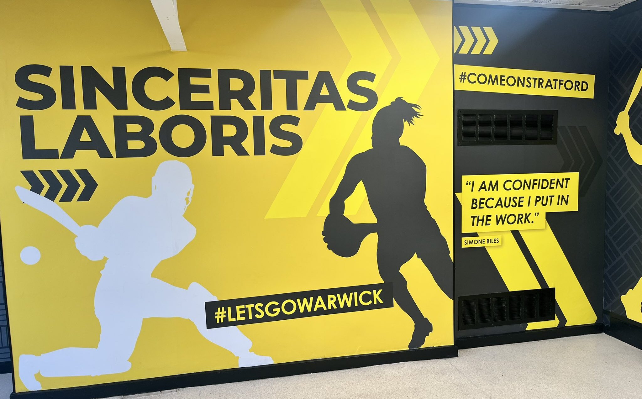 In the PE department the wall art features inspirational quotes from figures such as Mohammad Ali and gymnast Simone Biles.